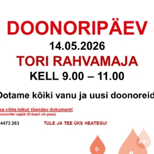Tori Rahvamajas 14. mail kell 9.00-11.00 ...