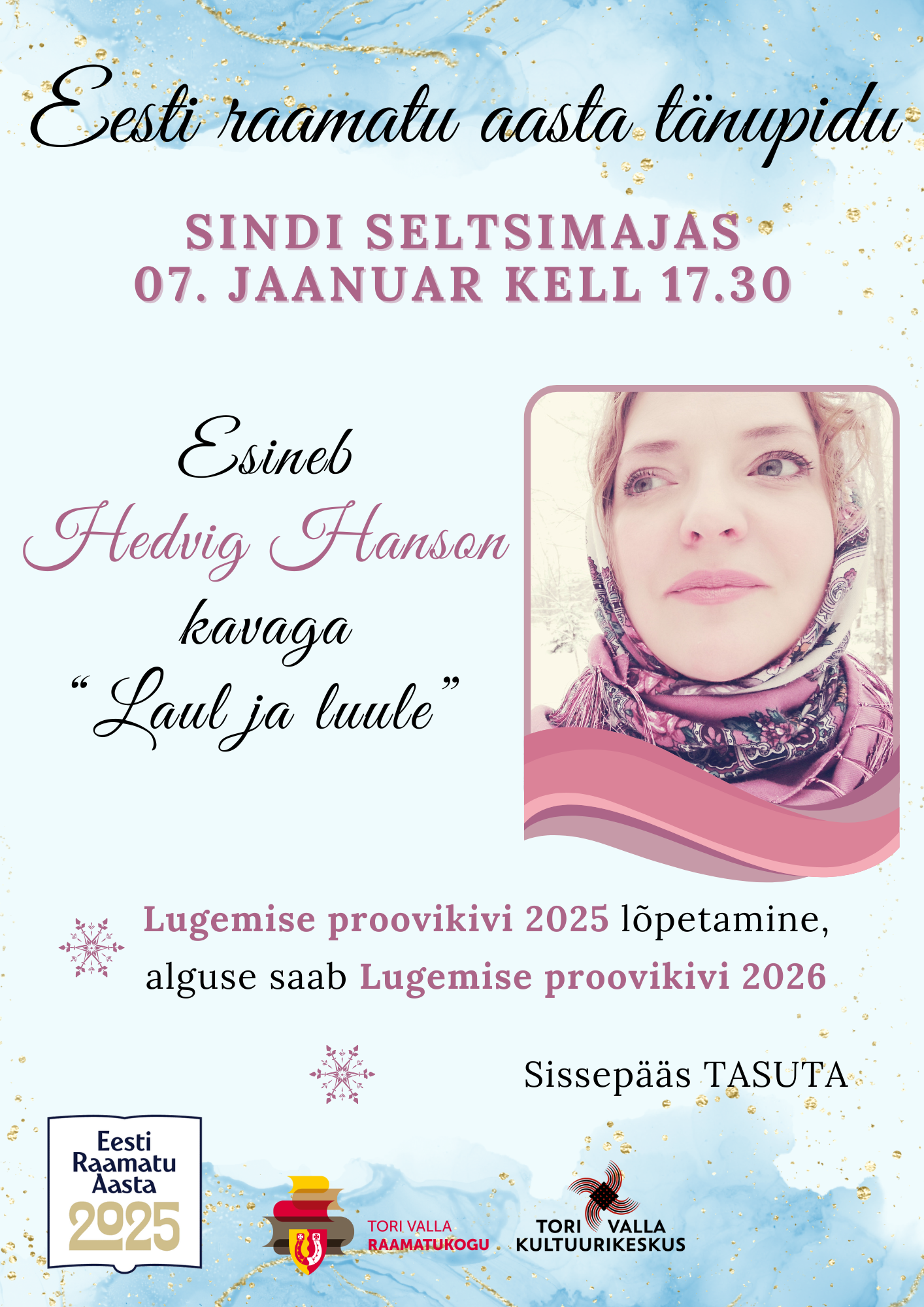 Oled oodatud 7. jaanuaril kell 17.30 Sindi Seltsimajja, kus Eesti Raamatu Aasta saab kauni ja sisuka lõpetuse.