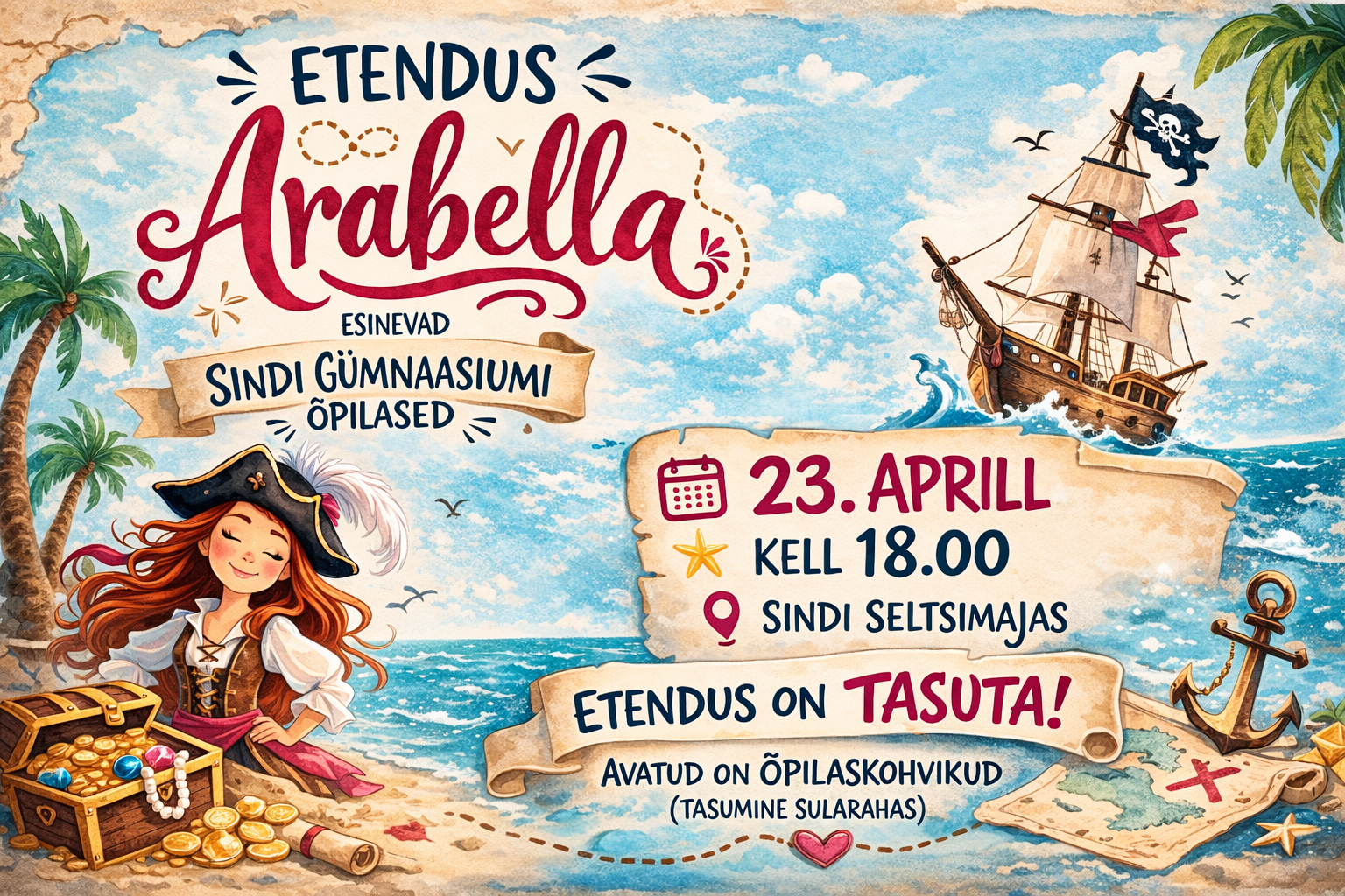 Sindi Gümnaasiumi andekad õpilased kutsuvad teid osa saama põnevast ja seiklusrikkast etendusest “Arabella”! Tule ja ela kaasa mereröövlite maailmale, kus ei puudu põnevus, sõprus ja suured tunded.