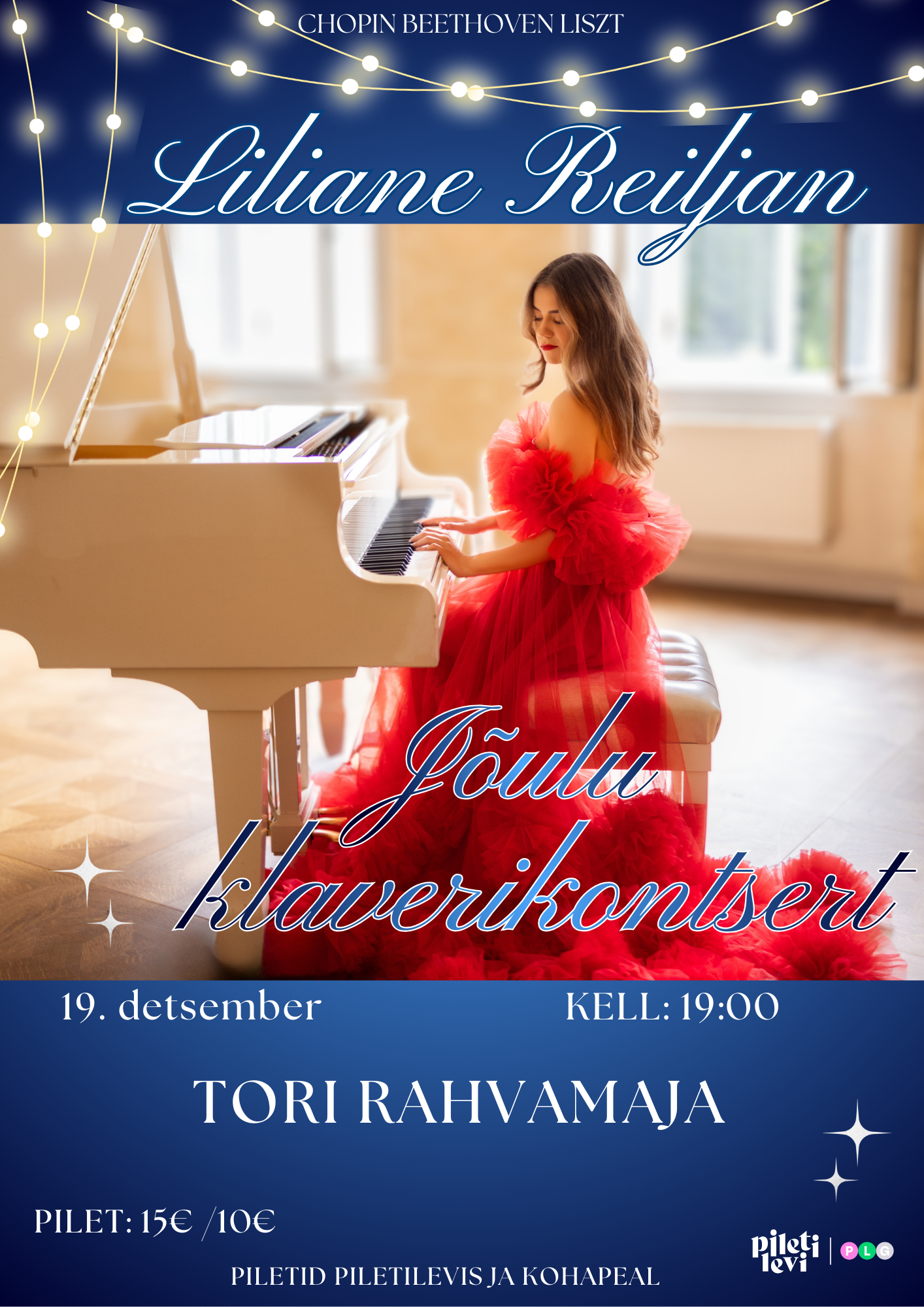 19. detsembril kõlab Tori Rahvamajas Liliane Reiljani klaverikontsert, mis toob kuulajateni teosed Chopinilt, Beethovenilt ja Lisztil.