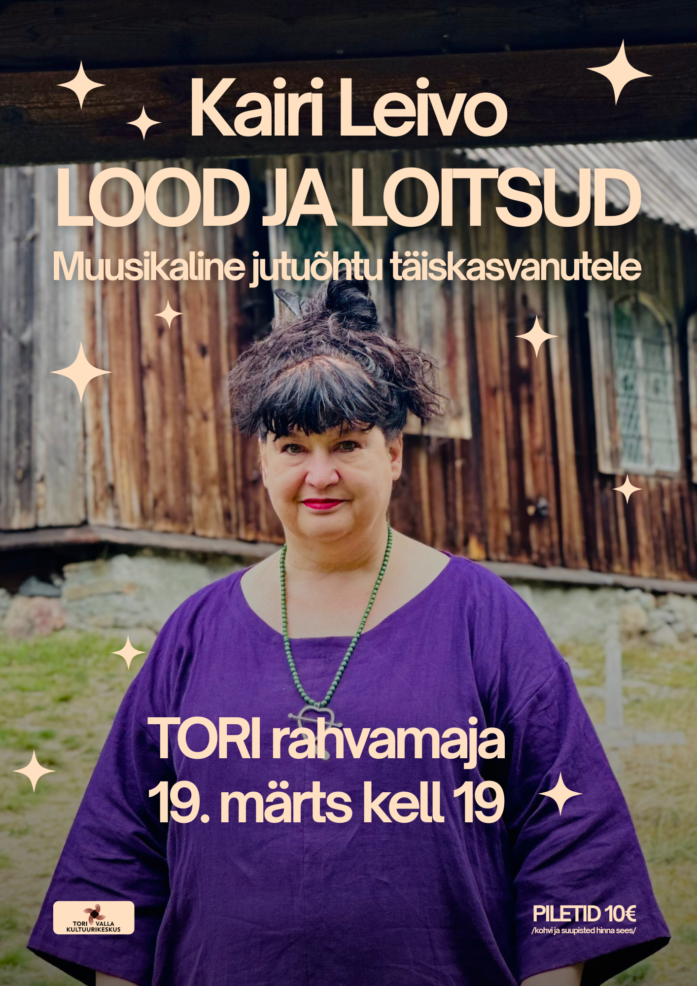 Kairi Leivo toob Tori Rahvamajja oma erilise kava “Lood ja Loitsud”. See on õhtu täis pärimust, soojust ja muusikat, mis on loodud spetsiaalselt täiskasvanud kuulajale.